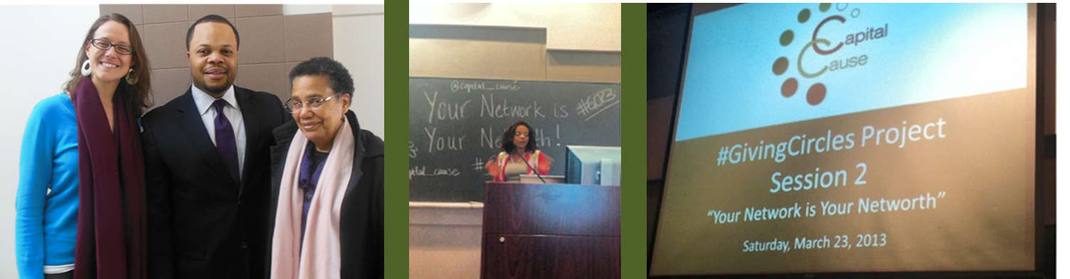 (March 25, 2013) Capital Cause Young Philanthropists gathered to learn from seasoned industry leaders on how to make their network their net worth. Pat Pasqual (Director, Foundation Center), Glen O’Gilvie (Executive Director, Center for Nonprofit Advancement), and Abby Flottemesch (Director, Atlas Corp) talked about how the definition of philanthropy is changing, shared practical steps on how to attract donors and keep them interested, and discussed donor strategies that may enable Millennials to maximize their fundraising efforts for causes they are most passionate about. Here are some knowledge nuggets from the conversation: