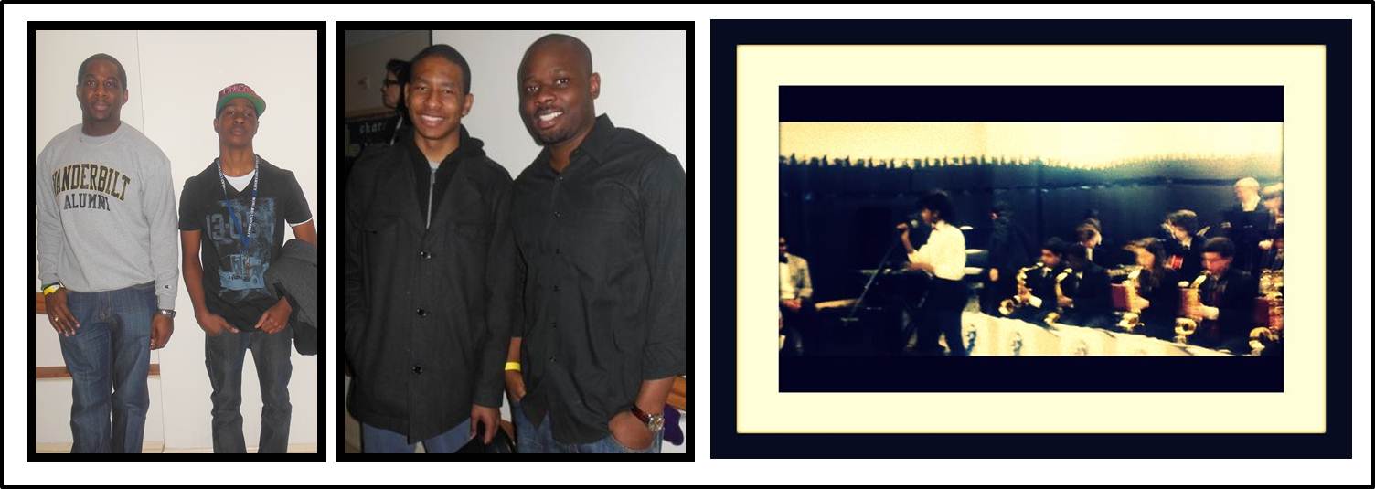 (February 12, 2013) Young Philanthropists, Corey Ponder (left) and Garret James (right), participated in a mentoring program at Thurgood Marshall Academy designed to engage students in the arts and celebrate the 1920s cultural movements. The program – Celebrating Our Roots – engaged students through dance workshops, student performances, and an art walk where students participated in live art demonstrations. The photo on the far left is of a 14-year old student who sang the classic Etta James song “At Last,” receiving a standing ovation. Listen to her rendition HERE.